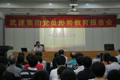 目前,我國(guó)周邊安全形勢(shì)問(wèn)題是廣大黨員關(guān)心的熱點(diǎn)問(wèn)題之一。為了進(jìn)一步培養(yǎng)廣大黨員的愛(ài)國(guó)情感和國(guó)防意識(shí),正確了解當(dāng)前形勢(shì),認(rèn)識(shí)安全穩(wěn)定的重要性,5月16日下午,武建集團(tuán)邀請(qǐng)海軍工程大學(xué)理學(xué)院人文社科系教授、武漢名家論壇主講人黃友牛,來(lái)集團(tuán)作國(guó)防形勢(shì)教育報(bào)告會(huì)。來(lái)自集團(tuán)各單位的黨員、積極分子260余人參加了報(bào)告會(huì)。